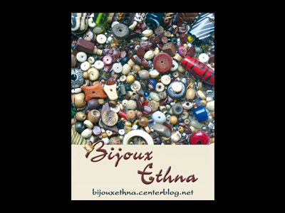 " Isabelle Pradelle - Créatrice de bijoux https://bijoux-ethna.fr Nos réalisations pour ce client Flyers. Marque page. Bons d'achat. Affiche. Poster (stop-trottoir). Plaque de rue. Cartes de visite. E-mailing.